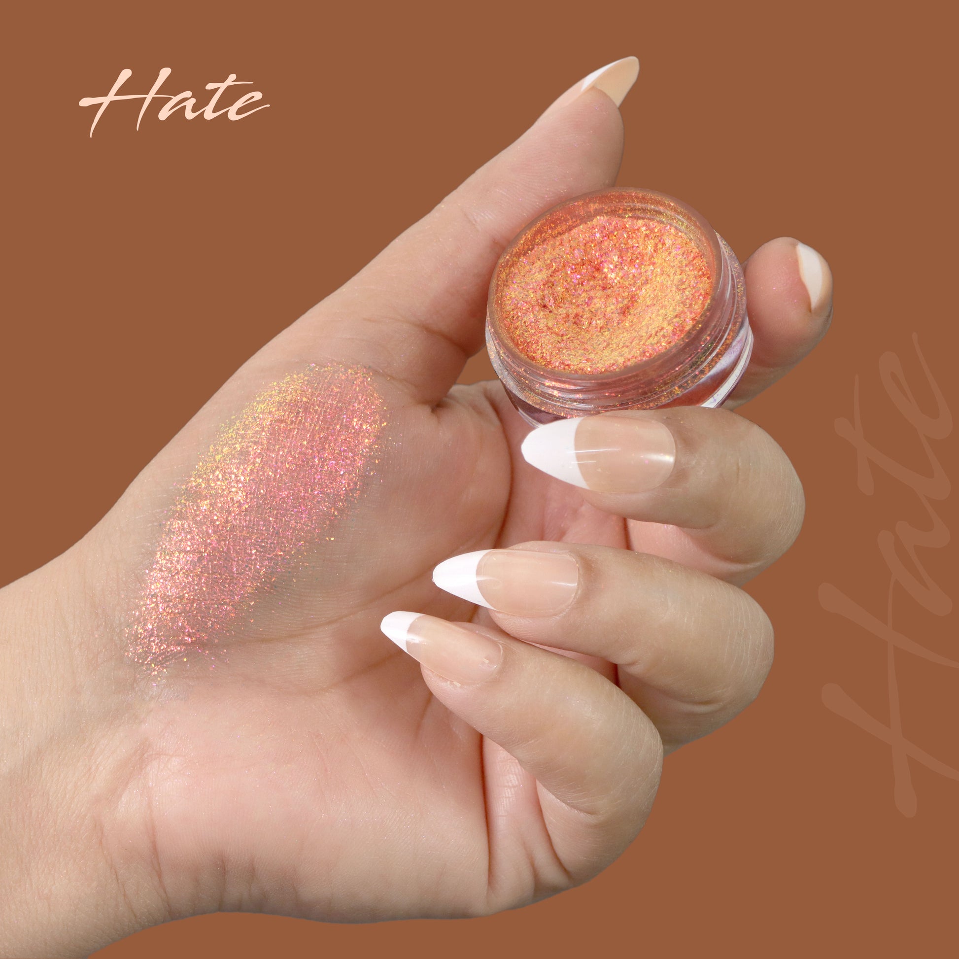 An intense fiery copper-orange base with flashes of molten gold and red chrome. This shade burns bright under light, reflecting a bold, heated glow that feels powerful, dramatic, and unapologetically strong.