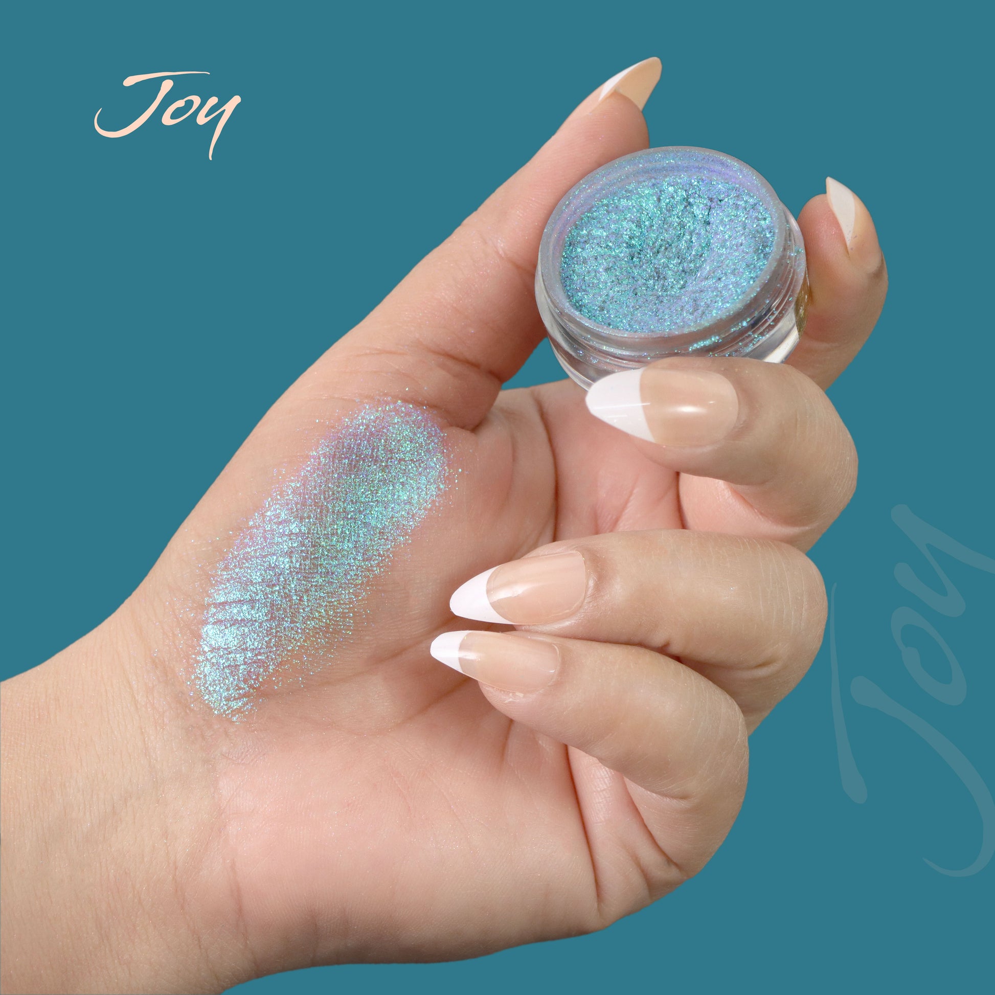 A vibrant aqua-blue base layered with teal, silver, and soft violet shifts. The light dances playfully across the surface, creating a fresh, energetic sparkle that feels uplifting and radiant.
