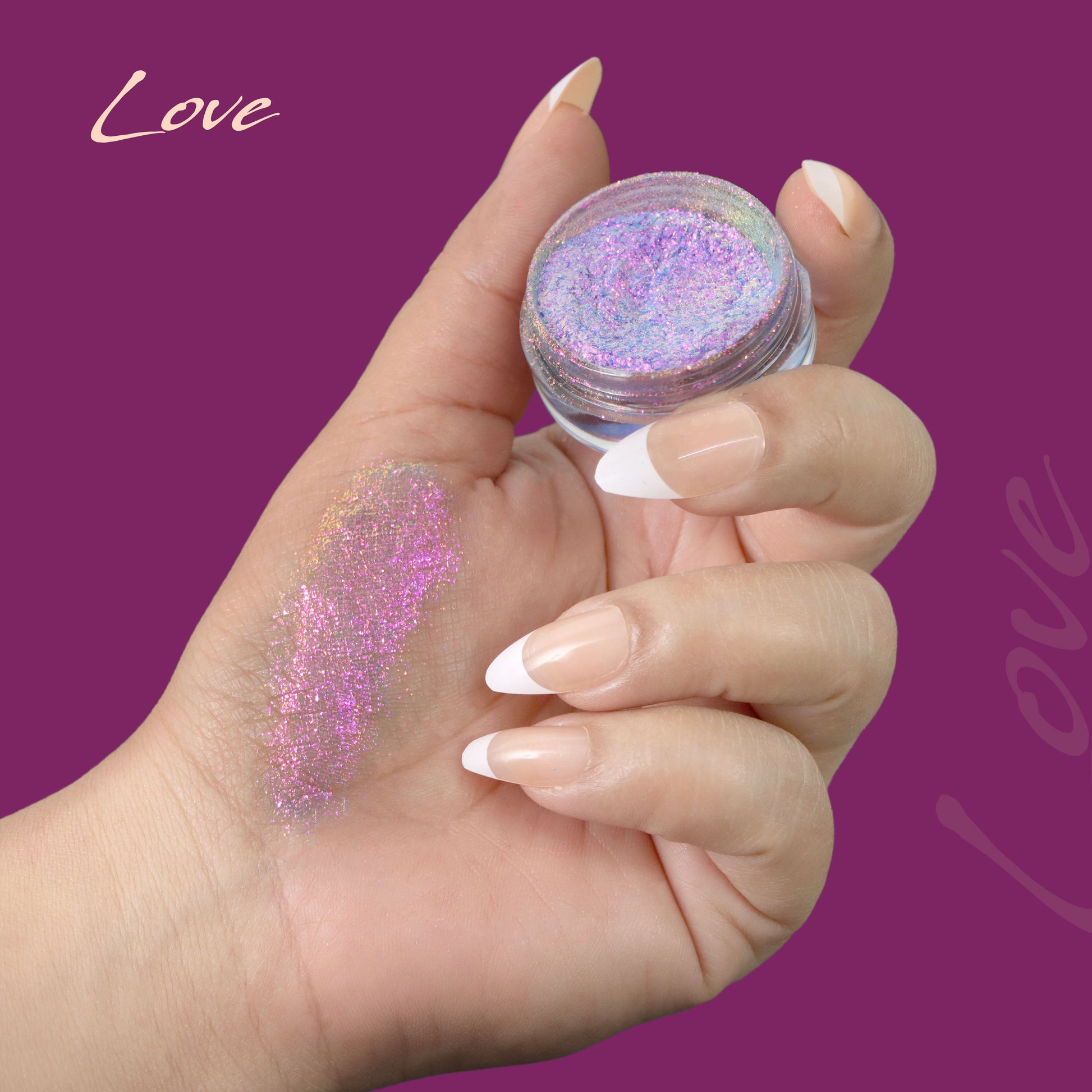 A romantic pink-lilac base glowing with iridescent gold and violet reflects. As the light moves, it blooms into a dreamy, heart-softening shimmer that feels warm, magical, and endlessly captivating.
